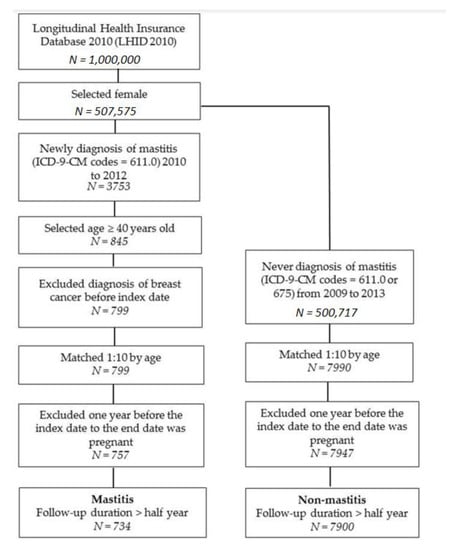 Chicago/Turabian StyleChen, Ying-Cheng, Chi-Ho Chan, Yu-Bing Lim, Shun-Fa Yang, Liang-Tsai Yeh, Yu-Hsun Wang, Ming-Chih Chou, and Chao-Bin Yeh. 2020. "Risk of Breast Cancer in Women with Mastitis: A Retrospective Population-Based Cohort Study" Medicina 56, no. 8: 372. https://doi.org/10.3390/medicina56080372