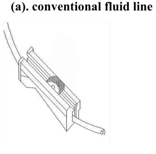 The new flushing set is a modification of a conventional IV set, especially the fluid volume controller. To manipulate the flushing controller, the flushing controller is pulled along a conventional fluid line and down and up twice to generate sufficient flushing volume and pressure (Figure 1).