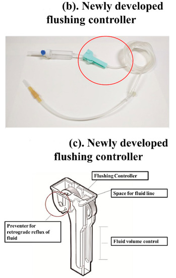 Flushing with an aseptic non-touch technique using a prefilled syringe was introduced as an alternative to conventional methods; although it eliminated preparation of the flushing fluid, it still needed several complex steps [19]. Positive- or negative-pressure mechanical valves with needleless connectors were also introduced. However, owing to the increased rates of IV-catheter-related infection, the CDC recommended against physicians using these methods [20,21].