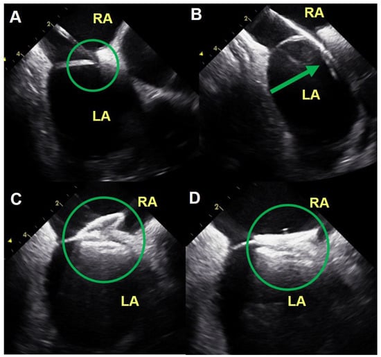 - Boccalandro, F.; Baptista, E.; Muench, A.; Carter, C.; Smalling, R.W. Comparison of intracardiac echocardiography versus transesophageal echocardiography guidance for percutaneous transcatheter closure of atrial septal defect. Am. J. Cardiol. 2004, 93, 437–440. [Google Scholar] [CrossRef]
