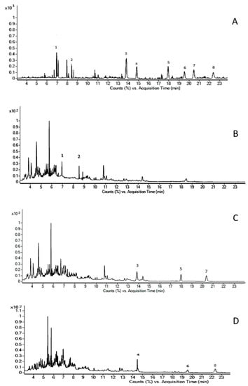 2.3. Ultra-High-Performance Liquid Chromatography-High-Resolution Accurate Masses Spectrometry (UHPLC-HRMS) Instrumentation