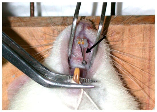 The left maxillary incisors of all animals were extracted in a non-traumatic technique. The dental papilla and the enamel organ were removed from each extracted tooth by using a #11 scalpel blade (Bard Parker, Caledonia, MI, USA), according to previous studies that aimed to interrupt the continuous growing of the tooth [29,30]. Then, they were immediately stored in milk for 30 min.