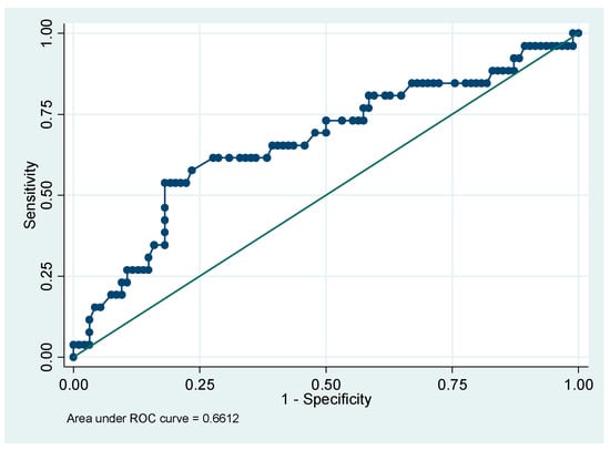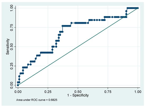 Receiver operating characteristic (ROC) curve associated with the binary logit model. Dependent variable: PI in the first trimester. PI: pulsatility index.