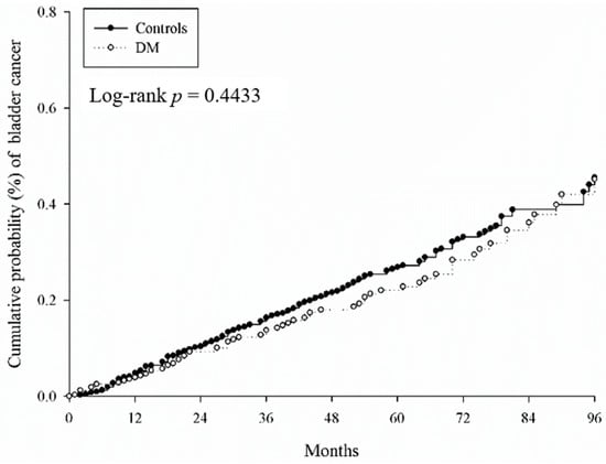 Pan, Y.; Lee, C.-Y.; Lee, L.-M.; Wen, Y.-C.; Huang, J.-Y.; Yang, S.-F.; Hsiao, C.-H. Incidence of Bladder Cancer in Type 2 Diabetes Mellitus Patients: A Population-Based Cohort Study. Medicina 2020, 56, 441. https://doi.org/10.3390/medicina56090441