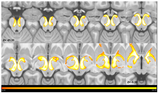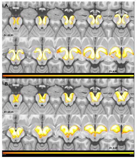 - An arbitrary threshold of 25% was applied to rule out voxels characterized by low track density, as in previous works [8,59].