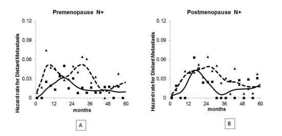 - Demicheli, R.; Bonadonna, G.; Hrushesky, W.J.M.; Retsky, M.; Valagussa, P. Menopausal status dependence of the timing of breast cancer recurrence after surgical removal of the primary tumour. Breast Cancer Res. 2004, 6, R689–R696. [Google Scholar] [CrossRef]