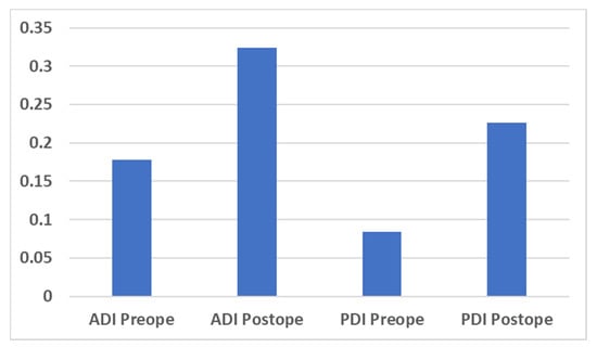 Figure 3. Bar chart for the preoperative and postoperative Brandner’s disc index. ADI = anterior disc index; PDI = posterior disc index; Preope = preoperative; Postope = postoperative.