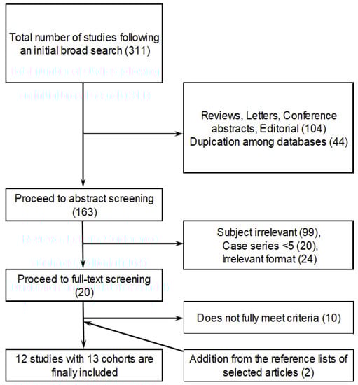 - Lefebvre, C.; Glanville, J.; Briscoe, S.; Littlewood, A.; Marshall, C.; Metzendorf, M.-I.; Noel-Storr, A.; Rader, T.; Shokraneh, F.; Thomas, J.; et al. Chapter 4: Searching for and selecting studies. In Cochrane Handbook for Systematic Reviews of Interventions Version 6.2 (Updated February 2021); Higgins, J.P.T., Thomas, J., Chandler, J., Cumpston, M., Li, T., Page, M.J., Welch, V.A., Eds.; Cochrane: London, UK, 2021; Available online: www.training.cochrane.org/handbook (accessed on 1 April 2021).