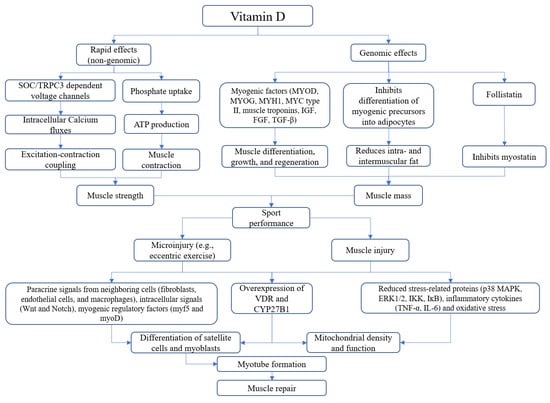 - Bollen, S.E.; Atherton, P.J. Myogenic, genomic and non-genomic influences of the vitamin D axis in skeletal muscle. Cell Biochem. Funct. 2021, 39, 48–59. [Google Scholar] [CrossRef]
