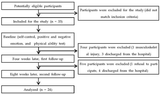 - Kim, J.H.; Park, E.Y. Mediating effect of self-control in relation to depression, stress, and activities of daily living in community residents with stroke. J. Phys. Ther. Sci. 2015, 27, 2585–2589. [Google Scholar] [CrossRef][Green Version]