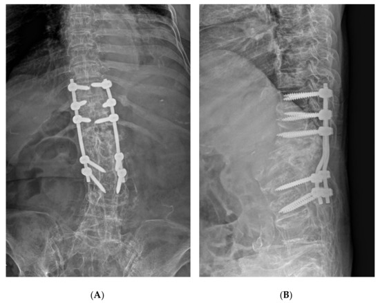 Postoperative plain radiograph (A,B).