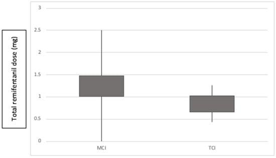 We found that consumption of remifentanil (mg) in the TCI group was lower (0.845 vs. 1.239),
