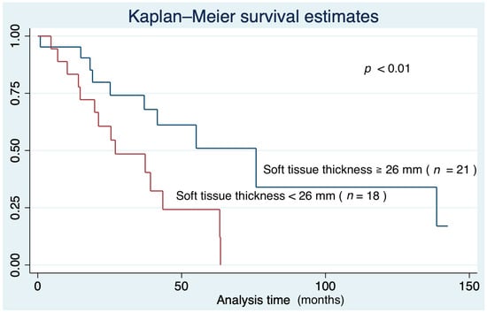Kaplan–Meier survival curve based on soft tissue thickness.