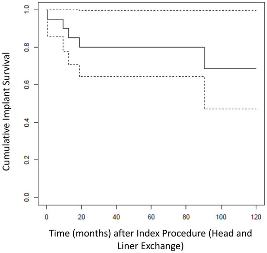 - Walmsley, D.W.; Waddell, J.P.; Schemitsch, E.H. Isolated Head and Liner Exchange in Revision Hip Arthroplasty. J. Am. Acad. Orthop. Surg. 2017, 25, 288–296. [Google Scholar] [CrossRef] [PubMed]
