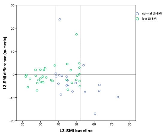 3.5. Comparison of Muscle Mass Dynamics after SVR between Groups with Low L3-SMI and Normal L3-SMI at Baseline