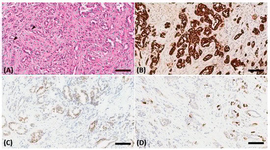 - Chang, D.K.; Jamieson, N.B.; Johns, A.L.; Scarlett, C.J.; Pajic, M.; Chou, A.; Pinese, M.; Humphris, J.L.; Jones, M.D.; Toon, C.; et al. Histomolecular phenotypes and outcome in adenocarcinoma of the ampulla of Vater. J. Clin. Oncol. 2013, 31, 1348–1356. [Google Scholar] [CrossRef] [PubMed]