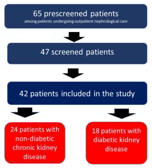 - Levey, A.S.; Stevens, C.H.; Zhang, Y.L.; Castro, A.F.; Feldman, H.I.; Kusek, J.W.; Eggers, P.; Van Lente, F.; Greene, T.; Coresh, J. CKD-EPI (Chronic Kidney Disease Epidemiology Collaboration). A new equation in estimate glomerular filtration rate. Ann. Intern. Med. 2009, 150, 604–612. [Google Scholar] [CrossRef] [PubMed]