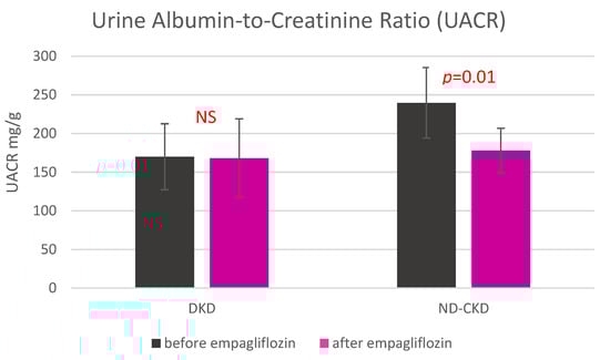 | DKD (n = 18) | 29.4 ± 22.4 | 13.8 ± 17.7 | NS | |