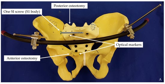- Osterhoff, G.; Dodd, A.E.; Unno, F.; Wong, A.; Amiri, S.; Lefaivre, K.A.; Guy, P. Cement Augmentation in Sacroiliac Screw Fixation Offers Modest Biomechanical Advantages in a Cadaver Model. Clin. Orthop. Relat. Res. 2016, 474, 2522–2530. [Google Scholar] [CrossRef] [Green Version]