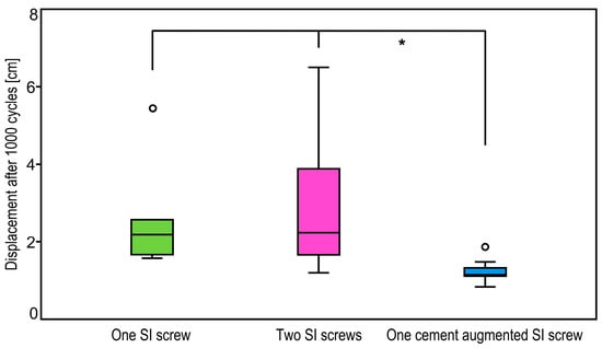 Lodde MF, Katthagen JC, Schopper CO, Zderic I, Richards RG, Gueorguiev B, Raschke MJ, Hartensuer R. Does Cement Augmentation of the Sacroiliac Screw Lead to Superior Biomechanical Results for Fixation of the Posterior Pelvic Ring? A Biomechanical Study. Medicina. 2021; 57(12):1368. https://doi.org/10.3390/medicina57121368