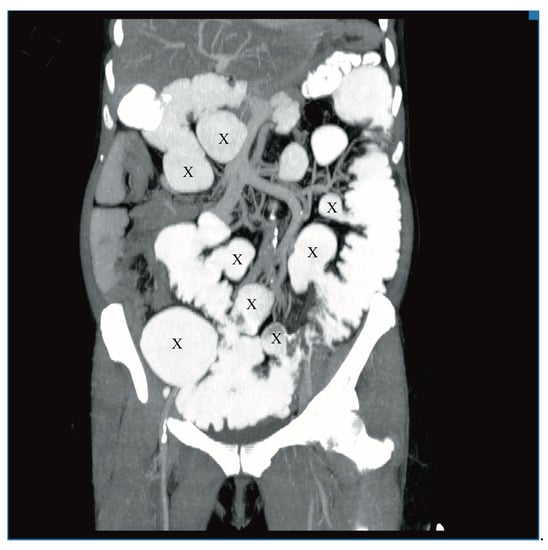 - Makris, K.; Tsiotos, G.G.; Stafyla, V.; Sakorafas, G.H. Small Intestinal Nonmeckelian Diverticulosis. J. Clin. Gastroenterol. 2009, 43, 201–207. [Google Scholar] [CrossRef] [PubMed]