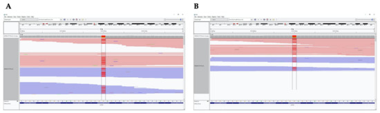 IGV images of heterozygote mutation (red color) c.3815C >A p.S1272Y in ATP7B inherited from the patient’s father (A) and mother (B).