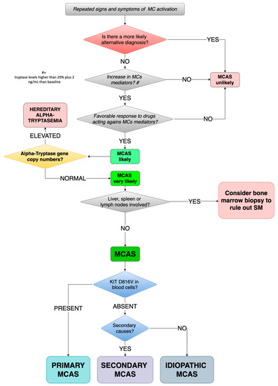 According to 2012 diagnostic criteria by Valent et al. [18] and the subsequent 2019 update [19], MCAS can be diagnosed by the simultaneous presence of: