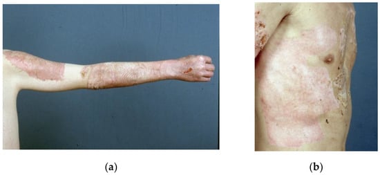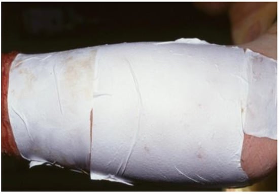 Excellent results, especially in high-risk toxic epidermal necrolysis (TEN) cases, have been described, including the youngest case ever published before 2006 []. The main factors might be reducing the overall mortality due to insufficient wound care, linked with pain reduction, reduced stress, the prevention of life-threatening infections, and the stabilization of the patient [,,,,,]. It has been shown to be superior to an allograft. Successful case reports have been published as well on staphylococcal scalded skin syndrome [], phototoxic plant burns [,,], frostbites [,], cotton wool babies [], and aplasia cutis [].