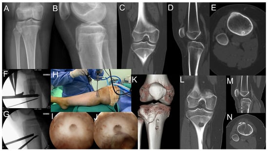 - Choi, E.S.; Shin, H.D. Medulloscopy-assisted surgery for osteonecrosis of the knee following treatment for adolescent leukemia: Mid-term results. Indian J. Orthop. 2020, 54 (Suppl. 1), 27–32. [Google Scholar] [CrossRef] [PubMed]