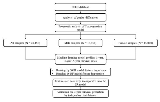 Flow chart of this study. The male and female samples were grouped as the datasets “Male” and “Female”, respectively. All the samples constitute the overall dataset “All”. The sample numbers are provided in parenthesis.