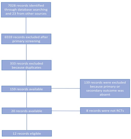 - Higgins, J.P.; Altman, D.G.; Gotzsche, P.C.; Juni, P.; Moher, D.; Oxman, A.D.; Savovic, J.; Schulz, K.F.; Weeks, L.; Sterne, J.A. The Cochrane Collaboration’s tool for assessing risk of bias in randomised trials. BMJ 2011, 343. [Google Scholar] [CrossRef]