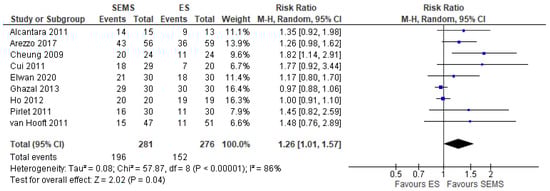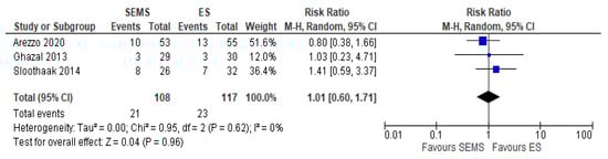 Chicago/Turabian StyleCirocchi, Roberto, Alberto Arezzo, Paolo Sapienza, Daniele Crocetti, Davide Cavaliere, Leonardo Solaini, Giorgio Ercolani, Antonio V. Sterpetti, Andrea Mingoli, and Enrico Fiori. 2021. "Current Status of the Self-Expandable Metal Stent as a Bridge to Surgery Versus Emergency Surgery in Colorectal Cancer: Results from an Updated Systematic Review and Meta-Analysis of the Literature" Medicina 57, no. 3: 268. https://doi.org/10.3390/medicina57030268