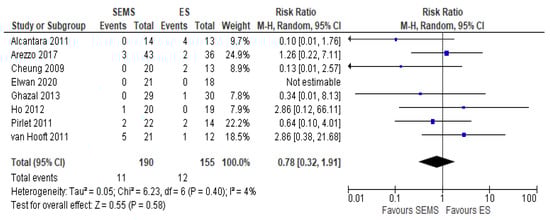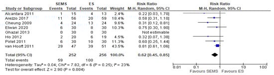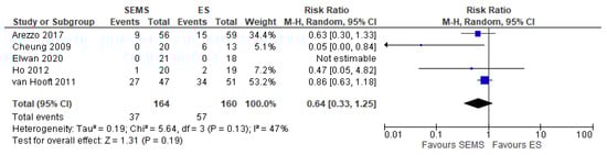 APA StyleCirocchi, R., Arezzo, A., Sapienza, P., Crocetti, D., Cavaliere, D., Solaini, L., Ercolani, G., Sterpetti, A. V., Mingoli, A., & Fiori, E. (2021). Current Status of the Self-Expandable Metal Stent as a Bridge to Surgery Versus Emergency Surgery in Colorectal Cancer: Results from an Updated Systematic Review and Meta-Analysis of the Literature. Medicina, 57(3), 268. https://doi.org/10.3390/medicina57030268