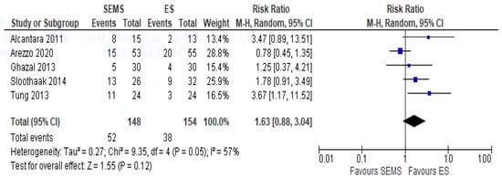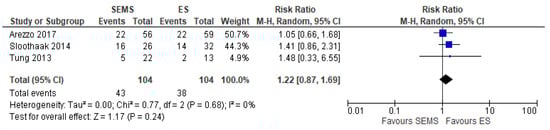- Liu, Z.; Kang, L.; Li, C.; Huang, M.; Zhang, X.; Wang, J. Meta-analysis of complications of colonic stenting versus emergency surgery for acute left-sided malignant colonic obstruction. Surg. Laparosc. Endosc. Percutan. Tech. 2014, 24, 73–79. [Google Scholar] [CrossRef] [PubMed]