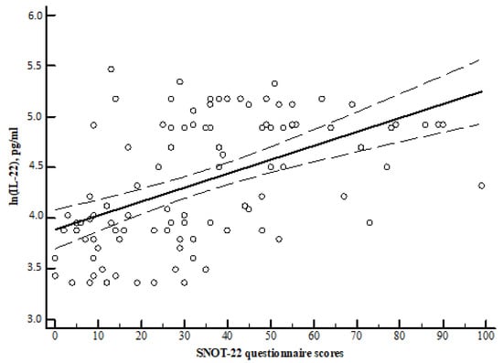 | The sum of the SNOT-22 Questionnaire Scores | Interleukins | ||