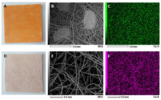 - Gabbay, J.; Mishal, J.; Magen, E.; Zatcoff, R.C.; Shemer-Avni, Y.; Borkow, G. Copper oxide impregnated textiles with potent biocidal activities. J. Ind. Text. 2006, 35, 323–335. [Google Scholar] [CrossRef]