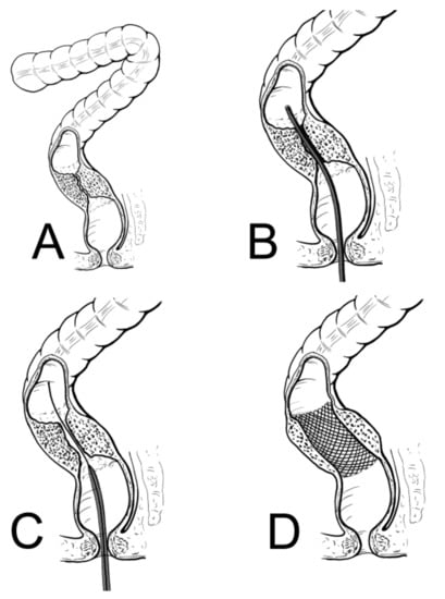 - Lamazza, A.; Fiori, E.; Sterpetti, A.V.; Schillaci, A.; De Cesare, A.; Lezoche, E. Endoscopic placement of self-expandable metallic stents for rectovaginal fistula after colorectal resection: A comparison with proximal diverting ileostomy alone. Surg. Endosc. 2016, 30, 797–801. [Google Scholar] [CrossRef] [PubMed]
