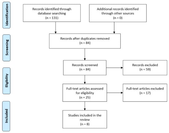 - Moher, D.; Liberati, A.; Tetzlaff, J.; Altman, D.G.; PRISMA Group. Preferredreporting items for systematic reviews and meta-analyses: The PRISMAstatement. BMJ 2009, 339, b2535. [Google Scholar] [CrossRef] [PubMed]