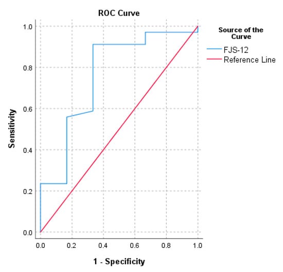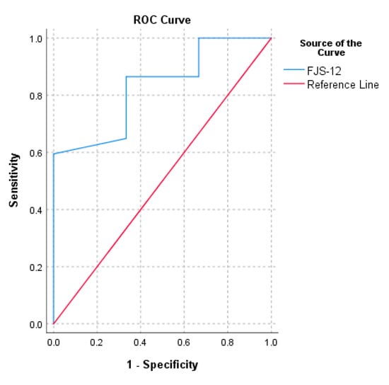 A priori power analysis was performed for sample size estimation. A sample size of 15 patients provides 80% power (alpha = 0.05, two-sided) to detect a difference with a large effect size (Cohen’s d = 0.8) in FJS-12 in the preoperative period to the 6-month postoperative follow-up, as in the literature [14,28]. Data normality for the FJS-12 was assessed using the Shapiro–Wilk test of normality. The non-normal distributions of the FJS-12, the baseline and 6-month postoperative scores were compared using the Wilcoxon signed ranks test; the correlation was calculated with Spearman’s rho. Values of p < 0.05 were considered statistically significant. Both distribution-based approaches and anchor approaches were used to estimate MCID for the FJS-12. Statistical analyses were performed using SPSS version 26 (IBM Inc., Armonk, NY, USA).