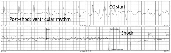 - Berdowski, J.; Tijssen, J.G.P.; Koster, R.W. Chest Compressions Cause Recurrence of Ventricular Fibrillation After the First Successful Conversion by Defibrillation in Out-of-Hospital Cardiac Arrest. Circ. Arrhythm. Electrophysiol. 2010, 3, 72–78. [Google Scholar] [CrossRef]