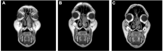 - Kim, S.S.; Han, M.H.; Kim, J.E.; Lee, C.H.; Chung, H.W.; Lee, J.S.; Chang, K.H. Malignant melanoma of the sinonasal cavity: Explanation of magnetic resonance signal intensities with histopathologic characteristics. Am. J. Otolaryngol. 2000, 21, 366–378. [Google Scholar] [CrossRef] [PubMed]