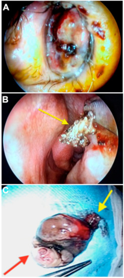 - Gilain, L.; Houette, A.; Montalban, A.; Mom, T.; Saroul, N. Mucosal melanoma of the nasal cavity and paranasal sinuses. Eur. Ann. Otorhinolaryngol. Head Neck Dis. 2014, 131, 365–369. [Google Scholar] [CrossRef] [PubMed]