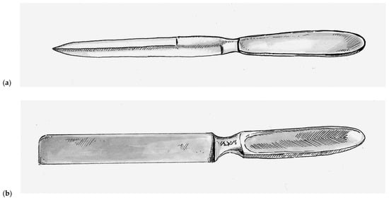 In 1920, the Thiersch’s skin grafting knife was introduced and was a rectangular stainless steel single-bladed instruments weighted toward the handle. This rectangular design, as seen in