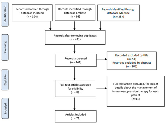 Chicago/Turabian StyleAngelico, Roberta, Francesca Blasi, Tommaso Maria Manzia, Luca Toti, Giuseppe Tisone, and Roberto Cacciola. 2021. "The Management of Immunosuppression in Kidney Transplant Recipients with COVID-19 Disease: An Update and Systematic Review of the Literature" Medicina 57, no. 5: 435. https://doi.org/10.3390/medicina57050435