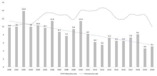 González-Mesa, E.; Blasco-Alonso, M.; Benítez, M.J.; Gómez-Muñoz, C.; Sabonet-Morente, L.; Gómez-Castellanos, M.; Ulloa, O.; González-Cazorla, E.; Puertas-Prieto, A.; Mozas-Moreno, J.; et al. Obstetric and Perinatal Outcomes after Very Early Preterm Premature Rupture of Membranes (PPROM)-A Retrospective Analysis over the Period 2000–2020. Medicina 2021, 57, 469. https://doi.org/10.3390/medicina57050469