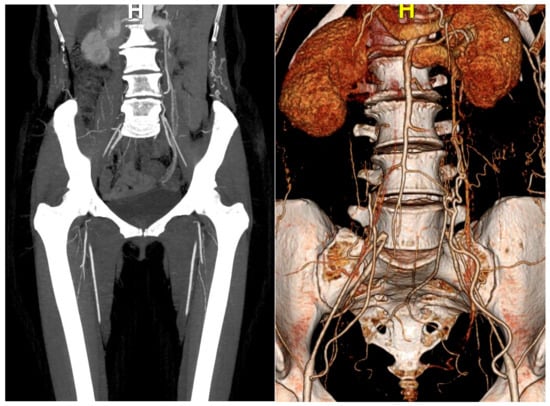 Leriche syndrome, an aortoiliac occlusive disease, is the thrombotic obliteration of the terminal part of the abdominal aorta, which may be asymptomatic or may present as intermittent claudication, diminished femoral pulse, lower-extremity pallor and/or impotence, similar to peripheral arterial disease (PAD) [,,]. PAD is especially difficult to diagnose, and Leriche syndrome is often misdiagnosed.