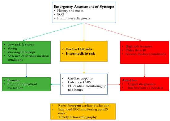 - Sandhu, R.K.; Sheldon, R.S. Syncope in the Emergency Department. Front. Cardiovasc. Med. 2019, 6, 5. [Google Scholar] [CrossRef]