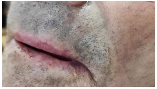 Although precancerous lesions of the area, such as actinic cheilitis, have been treated with various topical drugs, such as actixicam, ingenol mebutate, diclofenac, imiquimod, fluorouracil, and photodynamic therapy [,,], the only other topical treatment proposed, also in combination with surgery for lip SCC, was photodynamic therapy. A Chinese group proposed this solution using topical photodynamic therapy after surgery to treat lip SCC in a case series of two patients, with no recurrence reported after two years of follow-up [].