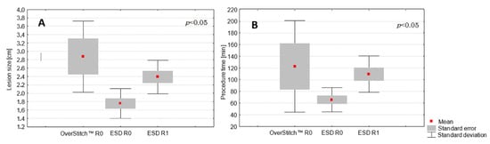 | Overall (n = 21) | ESD (n = 17) | OverStitch (n = 4) | p-Value | |