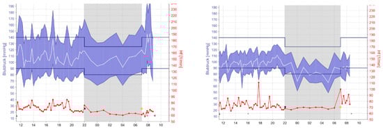 Figure 1), the detected BP values of patient 2 decreased appreciably. This phenomenon was observed in all five patients. To avoid potential complications (e.g., falls, hypoperfusion of target organs) and CV risks related to hypotension, the therapy had to be adjusted, and the medication intake was reduced for each patient.